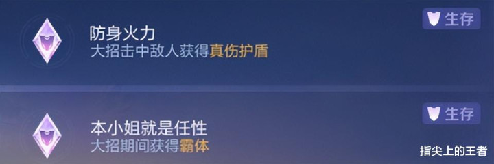 前边的两个是最优先考虑的,命中敌人获得真伤护盾,也包括兵线野怪,可以叠加,你会发现在人群里乱飞,金色护盾会套很厚,搭配霸体,根本死不掉,双抗+真伤护盾,相辅相成。