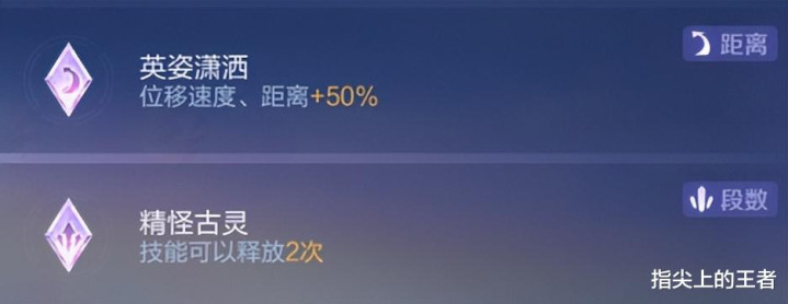 而四个天赋中,【英姿潇洒】更重要,【精怪古灵】能用两次,但却是像技能缓存一样慢慢攒的,战斗中其实还是一次,是为了保底大招落地后可以连续范围拉开距离。