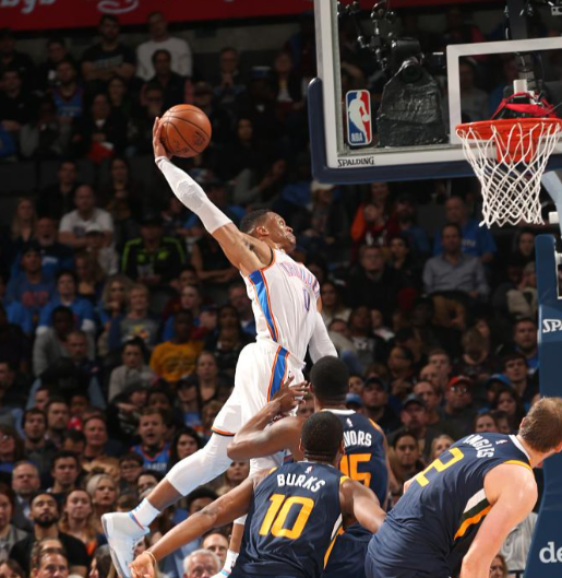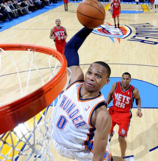 先说巅峰期的威斯布鲁克吧。2008 年他以选秀第四顺位加盟超音速(后来的雷霆),在雷霆的 11 年里,那炸裂的球风简直让观众挪不开眼。威少的爆发力,说他是历史级别的存在一点不夸张,活脱脱一枚蓄势待发的火箭,一旦冲起来,那股子劲儿谁都扛不住。他的直线突破,步子迈得那叫一个夸张,仿佛几步就能从球场这头跨到那头。腾空高度更是吓人,快攻时常见他从三分线外就开始加速,接着猛地跃起,像头猛虎扑食似的把球狠狠砸进篮筐,防守的人只能干瞪眼。