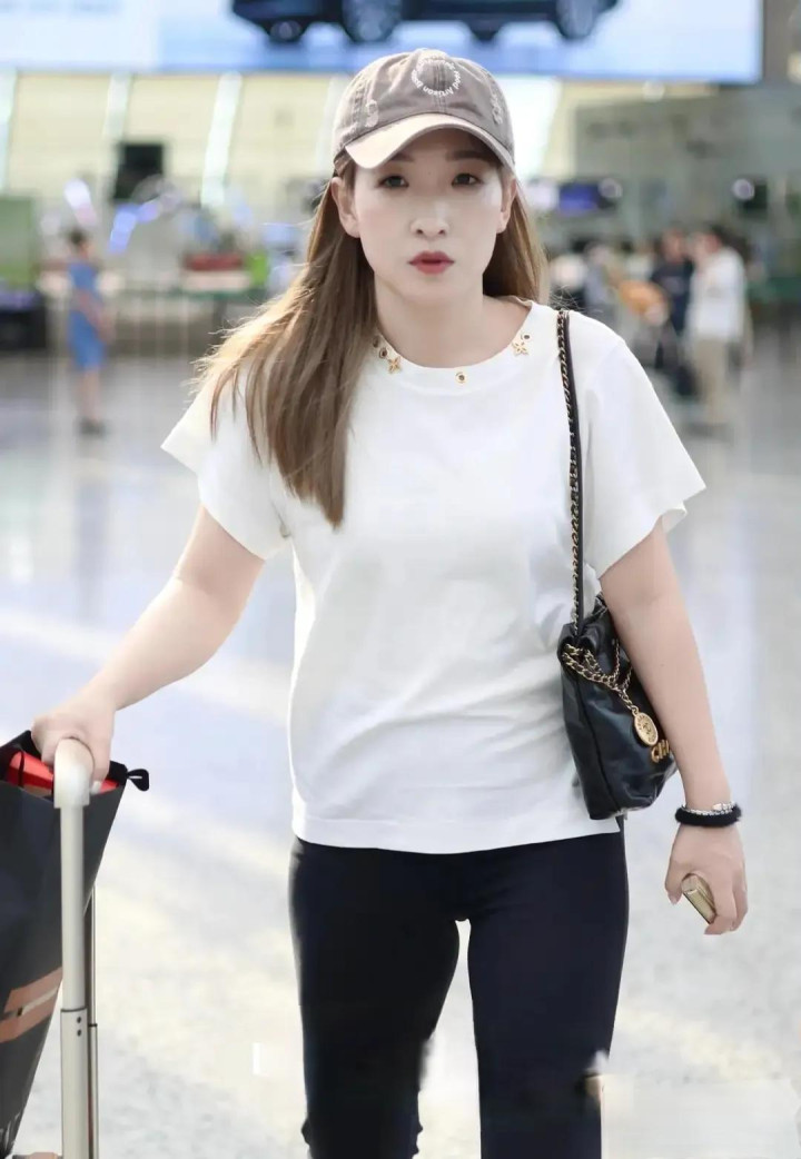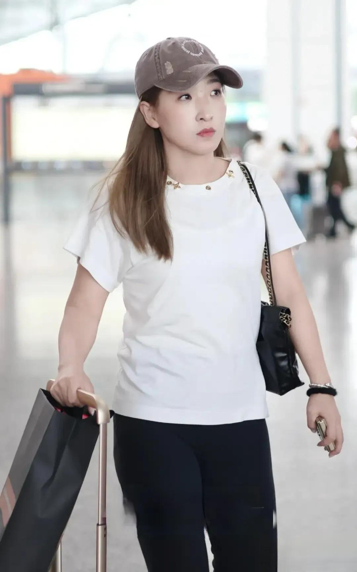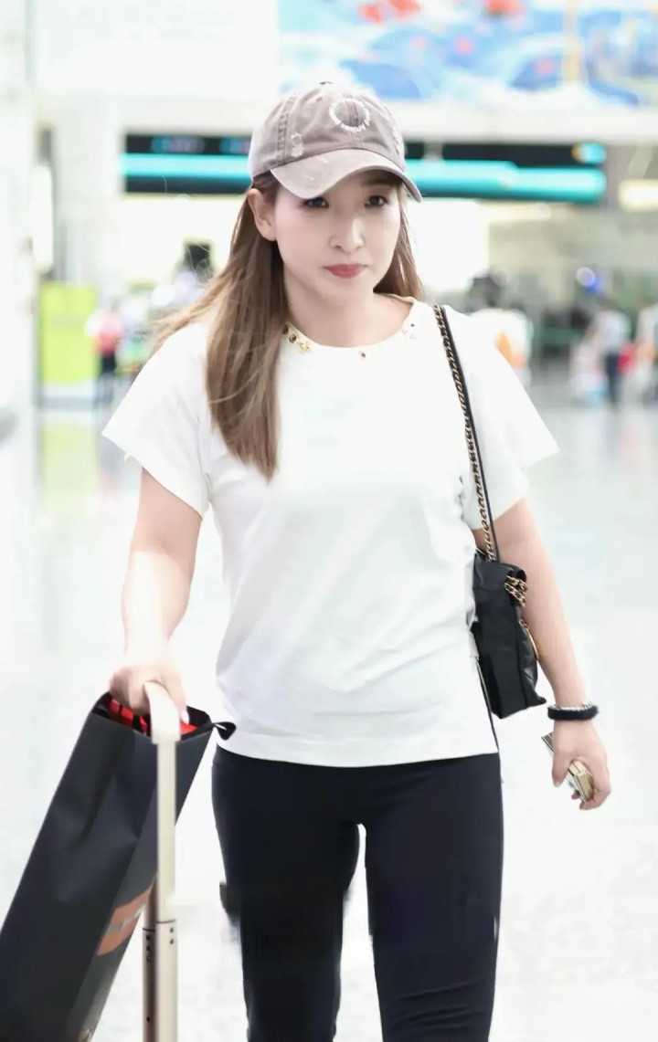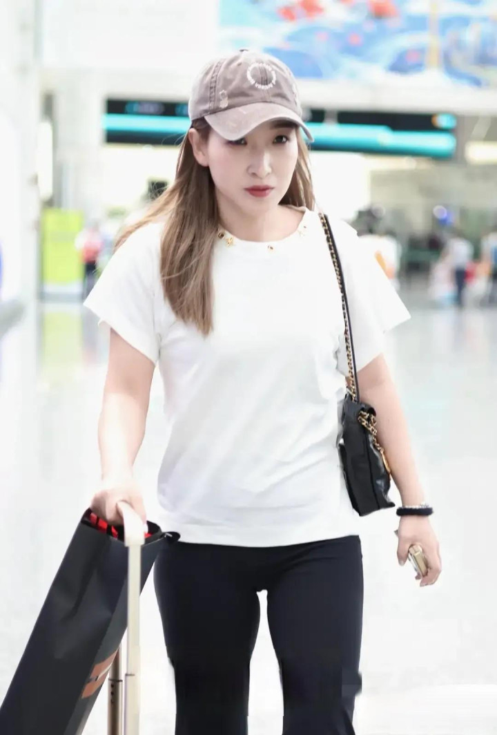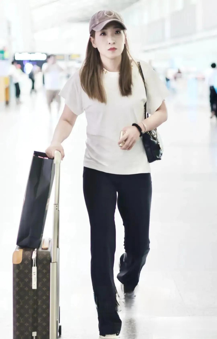 刘诗雯机场穿搭, 白短袖配黑喇叭裤, 简约又时尚