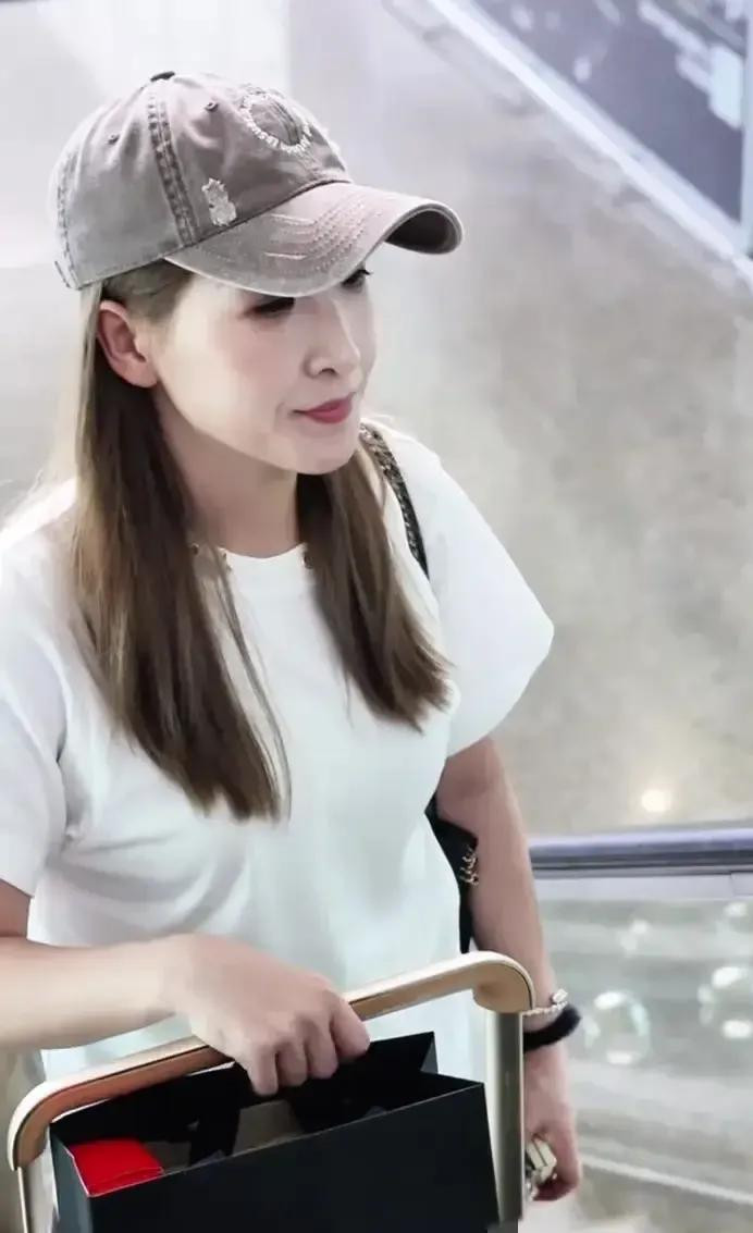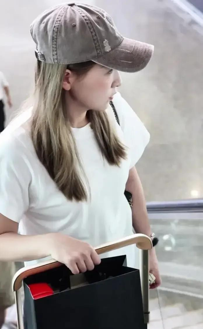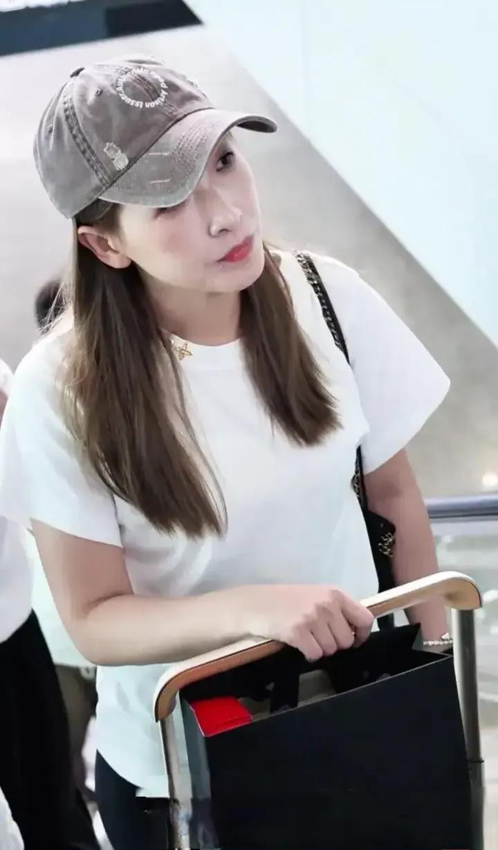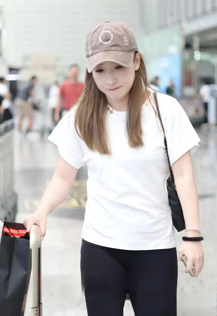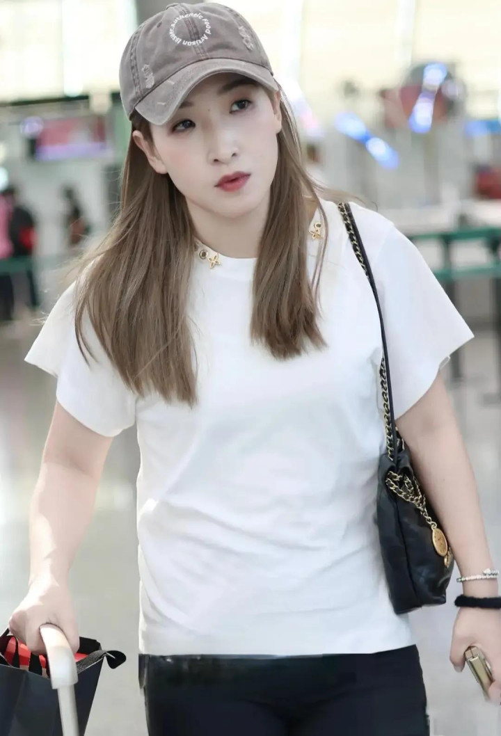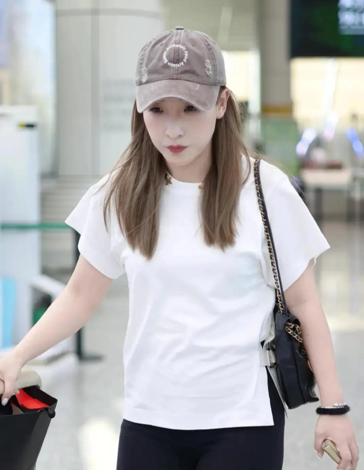 刘诗雯机场穿搭, 白短袖配黑喇叭裤, 简约又时尚