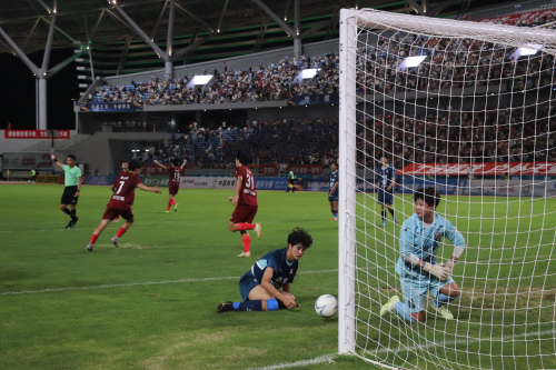下半场,萍乡队易边再战!比赛进行到第50分钟,9号沈文剑获得单刀机会,射门得手!萍乡队以3:1占据优势。这恰好又激发了吉安队球员的激情,吉安队迅速加强了对萍乡队的拼抢围堵,让对手屡屡失误,短短20分钟吉安队就扳回两球,将比分追平至3:3。戏剧性一幕持续到最后,萍乡队再次上演“绝杀时刻”。比赛补时阶段,7号谭永华接到直塞球,没有直接射门,横传给插上的18号郑钰城,随后一剑封喉——萍乡队踢进决定命运的第4球。随着终场哨声响起,萍乡队最终以4:3的比分赢得最后胜利。