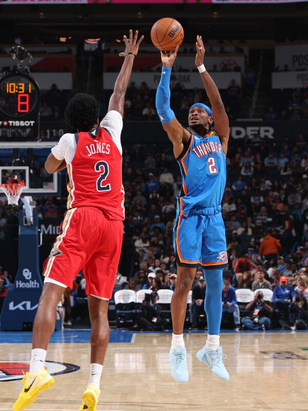 在杰威和霍姆格伦继续缺阵的情况下,雷霆今天依旧多点开花,全队8人得分上双。亚历山大高效发挥,三节仅出战30分钟,14投8中,三分5中1,罚球13中13,砍下30分2篮板7助攻,正负值+24。亚历山大已连续79场20+,过去一年的单场得分都没有低于20分,追平大O的纪录并列历史第三,仅次于张伯伦的连续126场和92场。