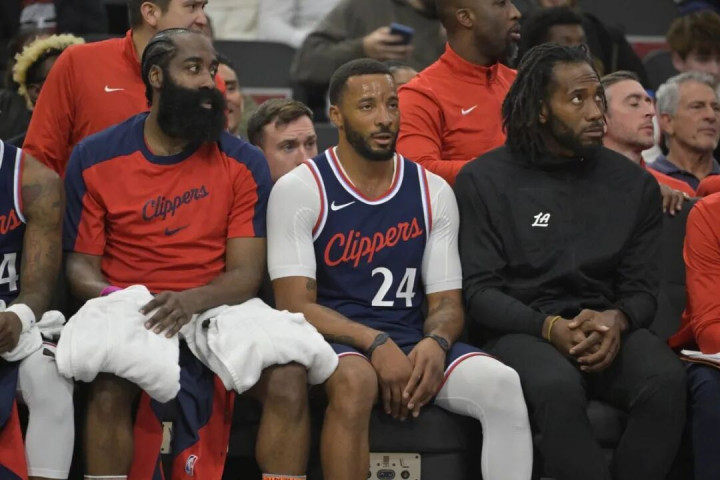 再看看快船,科林斯确实不错,但鲍威尔离开后,快船后场出现严重缺人情况。目前比尔已经报销,保罗太老严重下滑,伦纳德养伤不知何时复出,博格丹状态起伏不定,能依赖的只剩下哈登。
