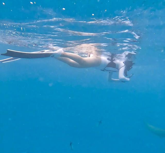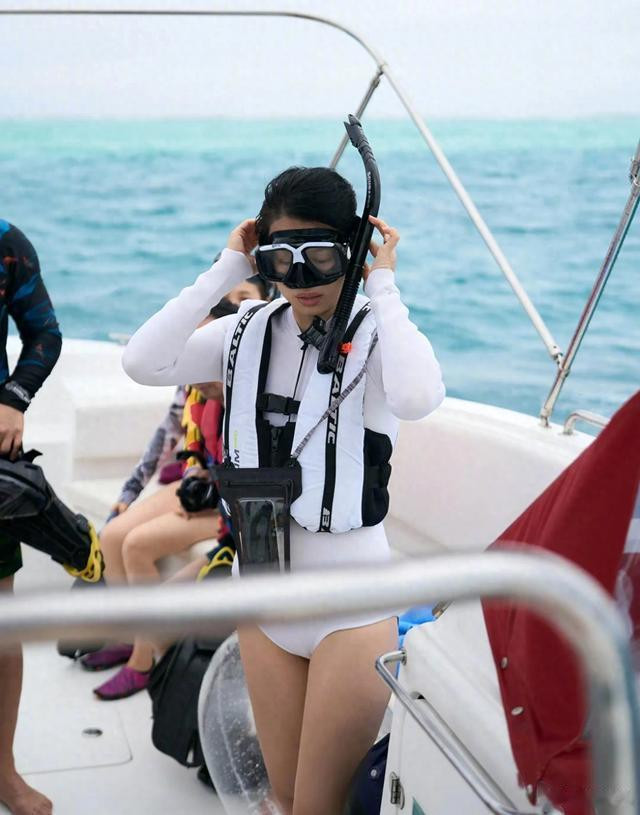 45岁胡杏儿分享潜水照, 穿白色泳衣, 三胎妈妈了身材一如选美时