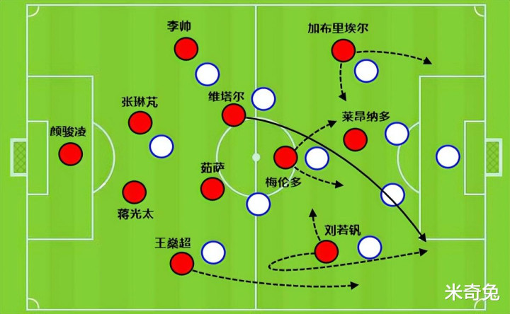 这场比赛称得上是刘若钒的个人代表作,从高位逼抢和争夺二点球发起二次进攻(制造点球)到组织推进(维塔尔点球破门前的那次转移球找加布里埃尔),再到自己梅开二度,称得上是闪耀全场。