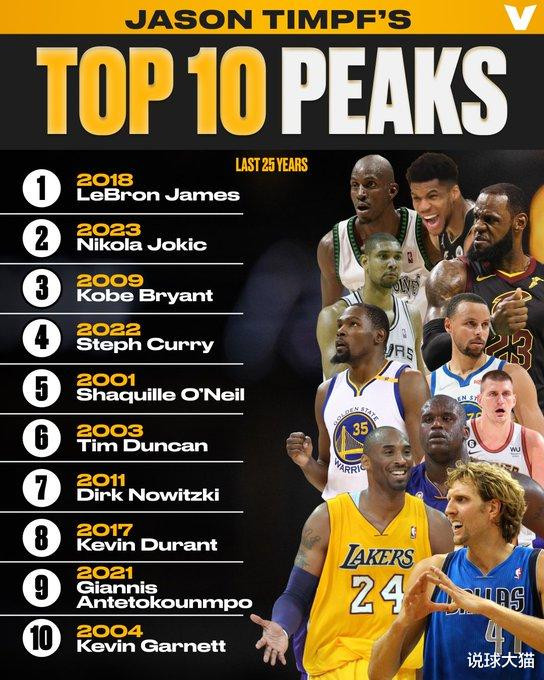 于个人来看,这两个时期的詹姆斯和约基奇,排名力压科比、邓肯和奥尼尔,多少存在争议之处。此外,06年的韦德没有上榜,这是认真的吗?